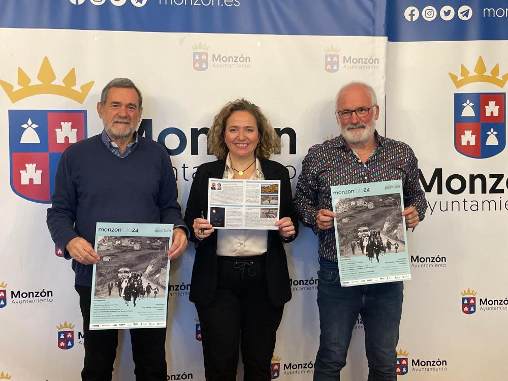 La concejal de Cultura, Marta Montaner Durán, y el presidente del Grupo Apertura, José Antonio Cubero, y Jesús Ginestra han presentado este martes en el Salón Azul del Ayuntamiento la Semana Fotográfica “Monzónfoto 2024”, que se celebrará en la Casa de la Cultura del día 4 al 15 de noviembre donde habrá una exposición denominada “Foto Altemir, crónica social y cotidiana”.