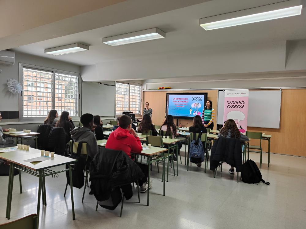¿Cuánto azúcar tienen las bebidas que consumimos? ¿Pueden llegar a ser perjudiciales? Hoy en día hay una gran variedad de bebidas azucaradas, edulcoradas y energéticas, cuyo consumo es muy habitual y que son especialmente populares entre la población más joven. Es lo que se ha centrado la actividad de Ciudad Ciencia que ha realizado en el IES José Mor de Fuentes y el Colegio Salesiano Santo Domingo Savio de Monzón.