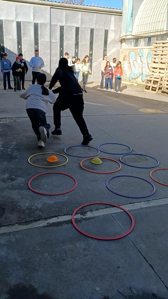 Para empezar con energía, hicimos algunos juegos de activación, como un tres en raya por equipos en el patio, que nos ayudó a entrar en ambiente y a trabajar en grupo.