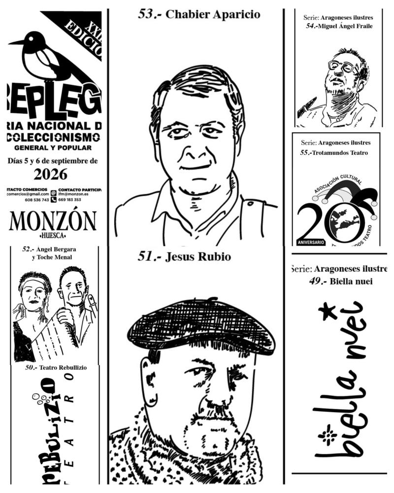 La Feria Nacional del Coleccionismo de Monzón (Replega) va avanzando en la preparación de la XXIII edición que se desarrollará los días 5 y 6 de septiembre, en es te marco, acaba de dar a conocer los diferentes artistas de la música popular aragonesa y diversas personalidades relacionadas con la cultura popular aragonesa que serán protagonistas de la colección de placas de cava y sobres de azúcar que se reparten como obsequio de la muestra.