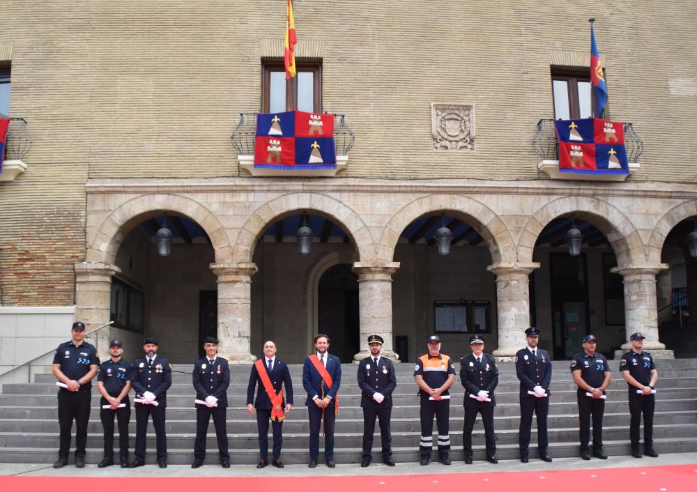 El alcalde de Monzón, Isaac Claver, ha cerrado el acto destacando y poniendo en valor a los reconocidos y la labor de la Policía Local , destacando que “son una parte esencial del día a día de Monzón, Selgua y Conchel, están presentes en los principales momentos de la ciudad y juntos, con otros cuerpos y fuerzas, damos bienestar y seguridad a los montisonenses. Podemos sentirnos muy orgullosos de todos vosotros ya que la profesionalidad y capacidad de actuar hacen que pueda afirmar con humildad, pero con convicción, que tenemos un cuerpo de Policía Local a la vanguardia y a la cabeza de los cuerpos de Policía de todo Aragón. Una vanguardia que demostramos con esfuerzo, con dedicación y con innovación… y así nos lo reconocen otras instituciones o administraciones felicitándonos por iniciativas que hemos puesto en marcha como la regulación de los vehículos de movilidad personal (patinetes) o la recién anunciada figura de “ Policía Tutor” para trabajar de la mano con los centros educativos.