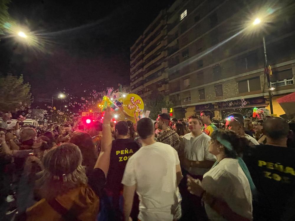 Tras el chupinazo infantil, las fiestas se congregaron en torno al desfile de carrozas que este año fue antes del pregón de interpeñas y el codetazo inicial de fiestas, actos masivos, especialmente, el de las carrozas con calles abarrotadas para ver el ingenio de las peñas y chamizos participantes en el concurso.