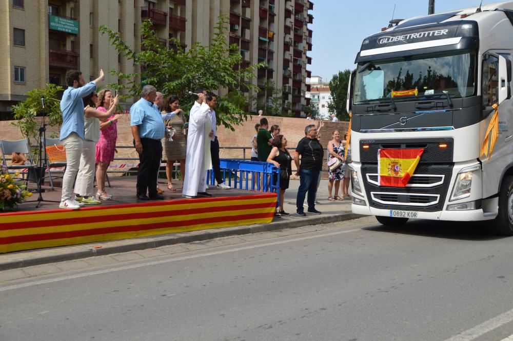 Una jornada que ha arrancado con la concentración en la parcela 48 del Polígono Paúles para desde allí iniciar el paseo por la calle José María Peñaranda, Camino del Aciprés, Paseo San Juan Bosco y Avenida de Lérida hasta la rotonda del Jaime I donde han girado para volver hasta la calle Paúles donde ha terminado. A la altura del puente Viejo, con la talla de San Cristóbal presidiendo, se ha bendecido a los camiones con la presencia entre otros del alcalde de Monzón, Isaac Claver, y la teniente de alcalde Marta Montaner.