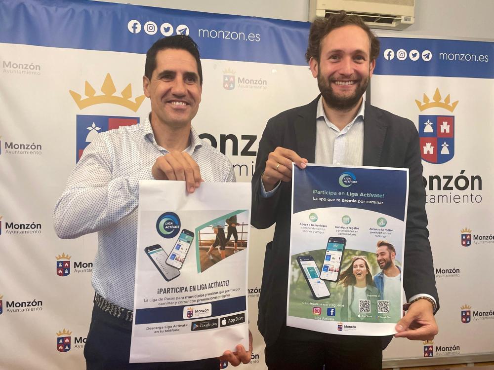 El alcalde de Monzón, Isaac Claver, y el concejal de Deportes, Eliseo Martín, han presentado este martes la adhesión del municipio (primero del Alto Aragón) a la Liga Actívate, una aplicación para corporaciones locales que fomenta la actividad física y hábitos saludables en la ciudadanía, impulsa la economía local de los municipios y que cuenta con más de 100 localidades en toda España y 15.000 participantes, permitiendo una competición entre ellos, a nivel municipal, provincial, autonómico y nacional.