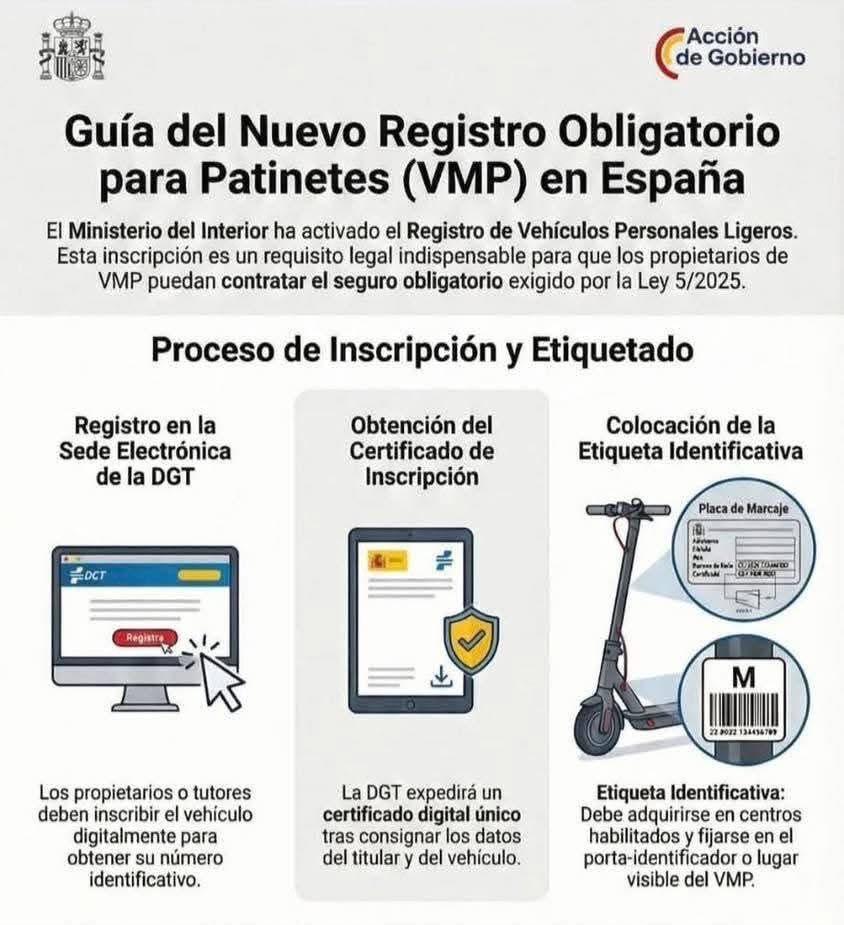 Obligación de inscribir su VMP en el Registro Nacional de Vehículos a través de la sede electrónica de la DGT