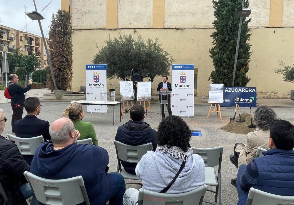 Isaac Claver, tras agradecer el trabajo de todos los departamentos y personas implicadas en el proyecto, ha explicado que “hoy estamos ante un día histórico. La Azucarera fue la primera gran industria de la ciudad que marcó una época siendo el motor y sustento para muchos montisonenses y vecinos. Cien años después marcamos otro hito. Con la colocación de esta primera piedra, comenzamos las obras de un proyecto en el que llevamos más de tres años de trabajo. Se trata de mucho más que una obra, estamos ante la rehabilitación de un símbolo propio de la identidad de nuestra ciudad, damos un salto del siglo XX al siglo XXI para convertirla en un referente del futuro de Monzón. Esta nave es nuestro recinto ferial en el que hemos albergado multitud de eventos y ferias como Fercomex, Arteria, feria del Libro, chiquicinca o la Movida... El proyecto que vamos a desarrollar supone la evolución y modernidad sin perder de vista el origen y nuestro pasado. Es la obra más potente, de iniciativa municipal, que se ha desarrollado en la historia del Ayuntamiento y nos va a permitir tener un espacio digno y en condiciones acorde a lo que merece nuestra ciudad. Gracias a esta obra podremos realizar ferias, congresos, eventos y conciertos cumpliendo toda la normativa y con aforos de hasta casi 3.000 personas. Además, será una nave plenamente accesible y conseguiremos casi duplicar su dimensión actual”.