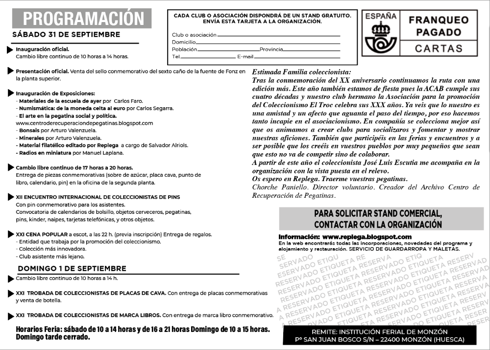 - Material filatélico editado por Replega a cargo de Salvador Alriols.