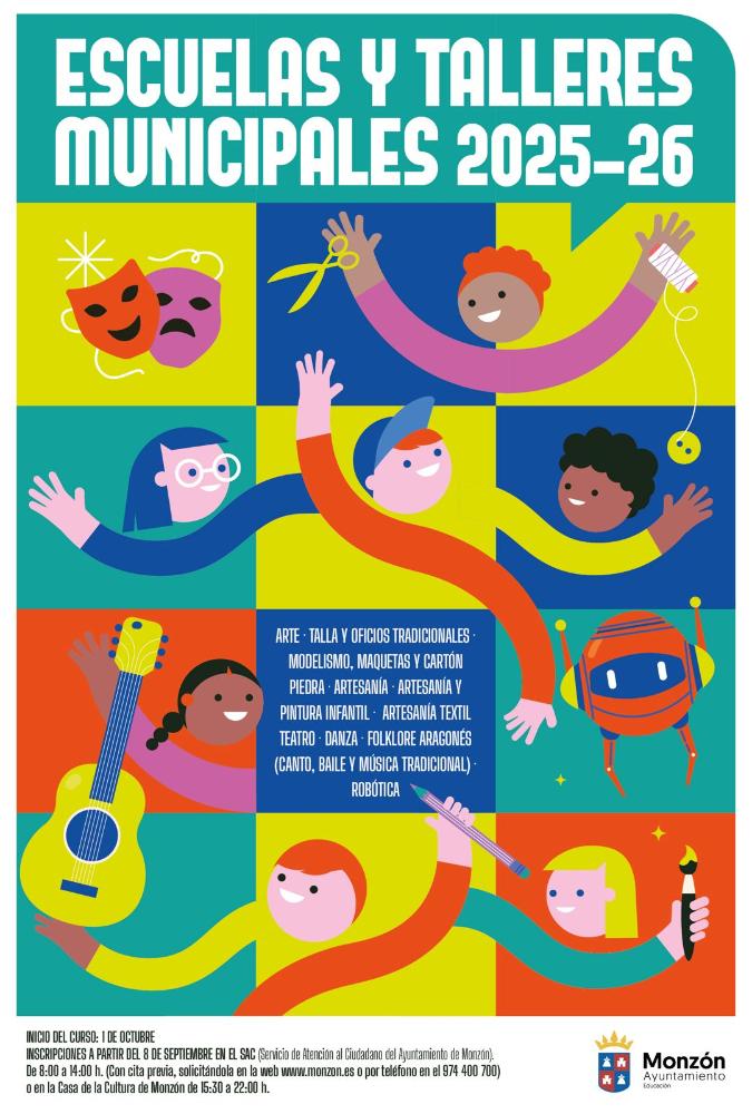 La concejalía de Educación del Ayuntamiento de Monzón ha dado a conocer las ofertas de las escuelas y talleres municipales del curso 2025-2026, que arrancará el día 1 de octubre. El día 8 de septiembre arranca el periodo de inscripción con la única novedad en robótica que se limita de 1º a 6º de primaria.