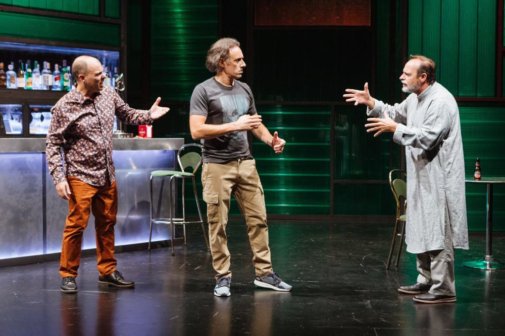 Aquí no somos racistas. Aquí todos "tenemos muchos amigos negros". Y eso que se oye que cada vez hay más delincuencia y que esa gente nos acabará quitando el trabajo. Es tarde. Ni un alma por la calle. En un bar cualquiera a punto de cerrar, el dueño y un amigo se toman la última. Parecen muy amigos pero los dos esconden secretos. De pronto un migrante en apuros llama a la puerta y pide que le dejen cargar el móvil para llamar a su hija, en Londres. Sin su móvil, no puede comunicarse ni proseguir su viaje. Es el principio de una larga noche en la que los de “aquí” sólo quieren ayudar a alguien que viene de tan lejos y que no puede hacerse entender ni entenderlos. Esta es también la historia de un extranjero que entra en un bar y remueve involuntariamente los secretos que escondían sus dos anfitriones. Al final de la noche, la versión que contarán a la policía es un clásico: el migrante no tenía papeles, entro avasallando, les atacó, quería robarles. Ellos sólo querían hacerle un favor, porque un favor se le hace a cualquiera. Quizá el problema es que no se le entendía nada de nada. Si no, allí no pasa nada. Una comedia llena de (negra) humanidad, que pone de relieve las (negras) miserias de que es capaz el ser humano, con un (negro) sentido del humor.