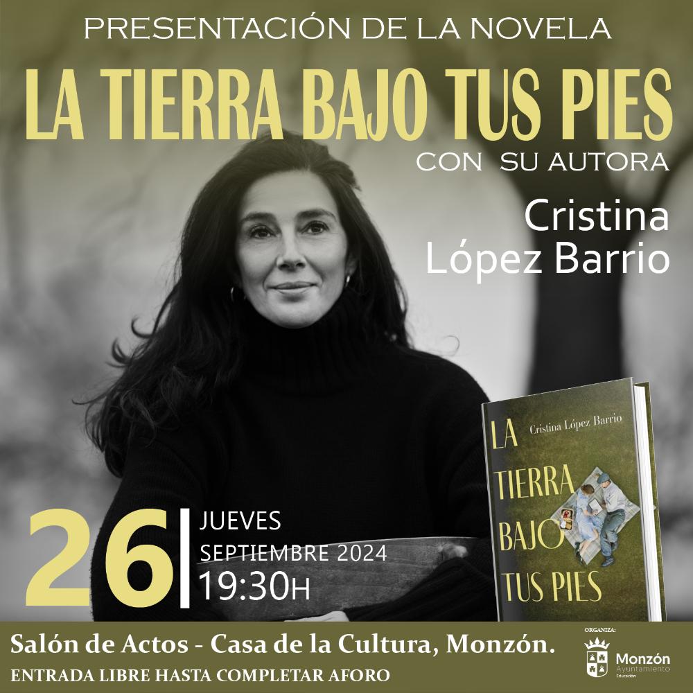 Cristina López Barrio presenta el día 26 de septiembre a las 19:30h en la Casa de la Cultura su novela "La tierra bajo tus pies", que sirve de inauguración del curso de los Grupos de Lectura de Selgua, Conchel y Monzón