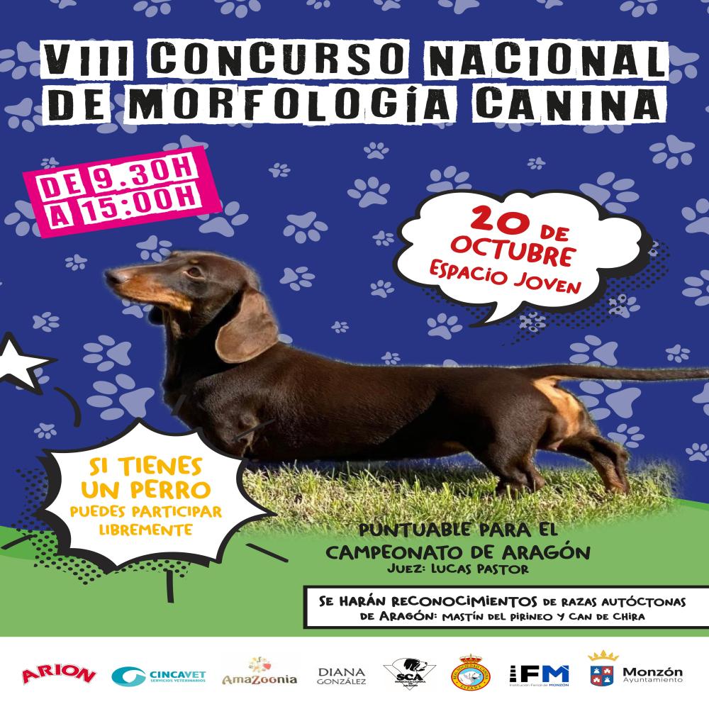 El VIII Concurso Nacional de Morfología Canina “Ciudad de Monzón”, que se celebrará el día 20 de octubre en el exterior del Espacio Joven , a partir de las 9:30h. Como es habitual está abierto a la participación de todo el que lo desee y es puntuable para el Campeonato de Aragón.