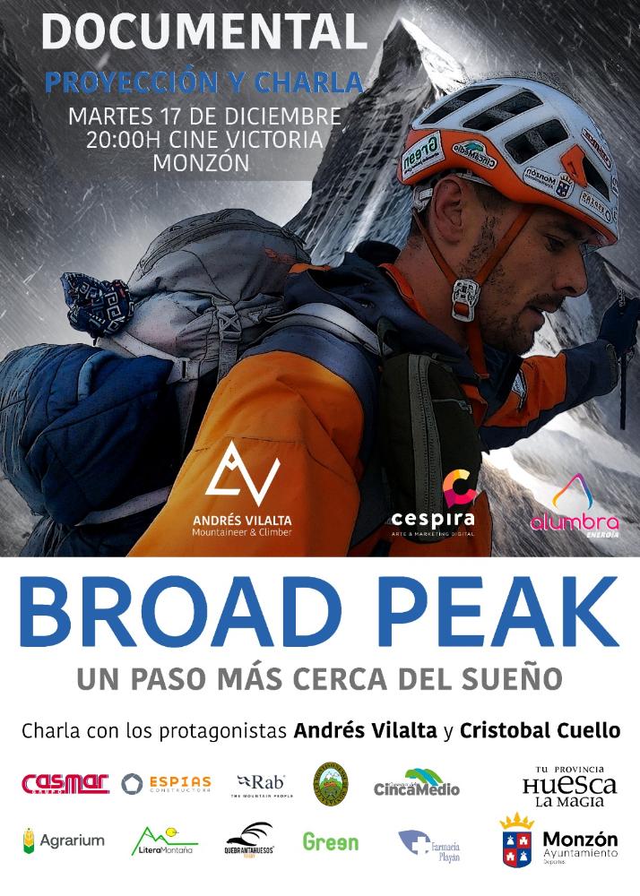 Martes, día 17 de diciembre, a las 20:00 en el Cine Victoria proyección del documental "Broad Peak", un paso más cerca del sueño con charla de Andrés Vilalta y Cristóbal Cuello