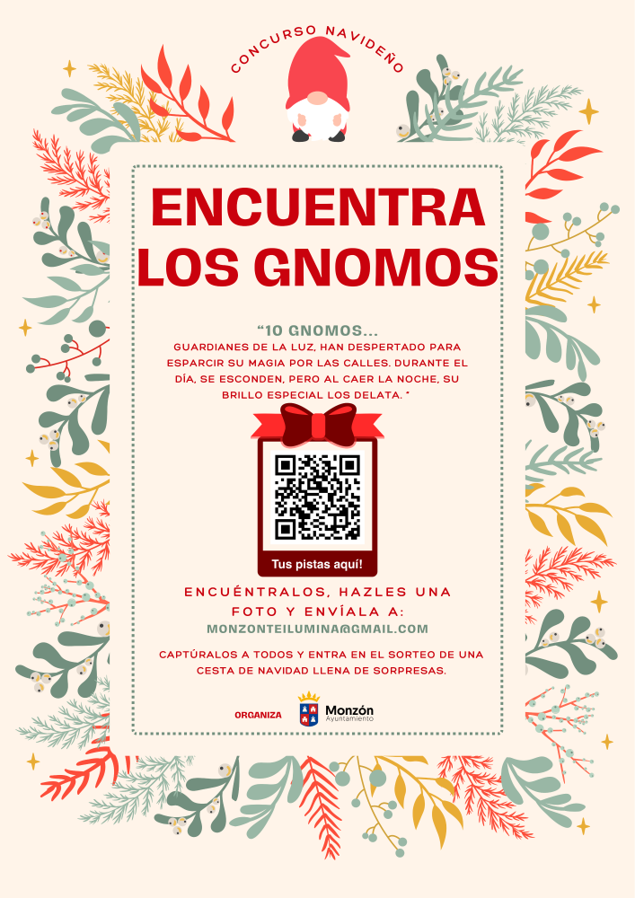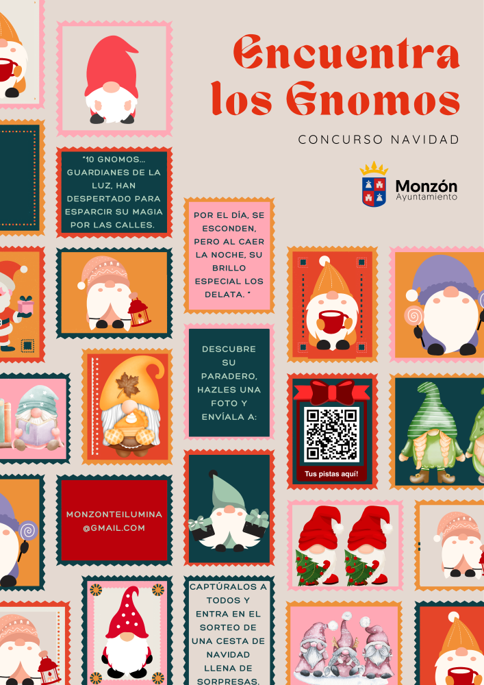 -10 gnomos se han escapado por las calles de monzón, encuéntralos y entra en el sorteo de una cesta de navidad.