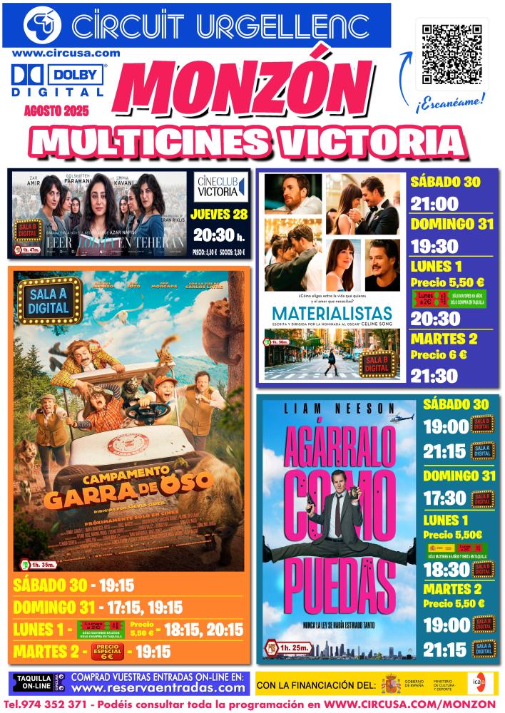 Lunes (18:30) Precio 5,50 € / +65 2 € AGÀRRALO COMO PUEDAS (12) Lunes (20:30) Precio 5,50 € / +65 2 € MATERIALISTAS (Apta)