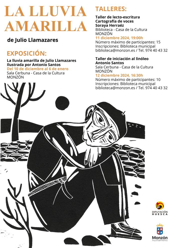 De la mano de la DPH se podrá ver en la Sala Cerbuna de la Casa de la Cultura la Exposición La LLuvia Amarilla de Julio Llamazares del día 10 de diciembre al día 6 de enero de 2025