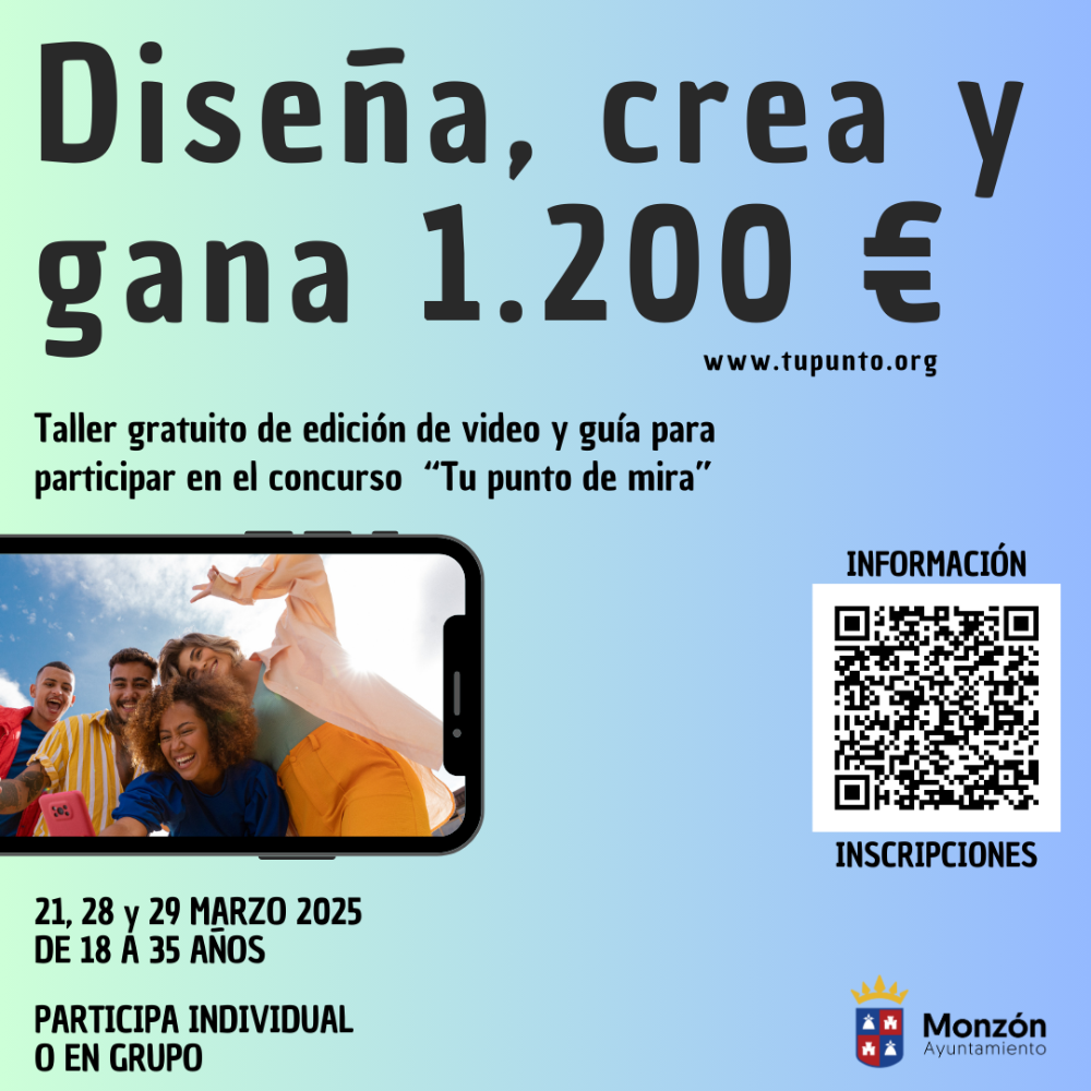 ?? Desde el Ayuntamiento de Monzón ofrecemos talleres gratuitos de edición de vídeo los días 21, 28 y 29 de marzo para que puedas mejorar tus habilidades y crear un contenido increíble en estos concursos.