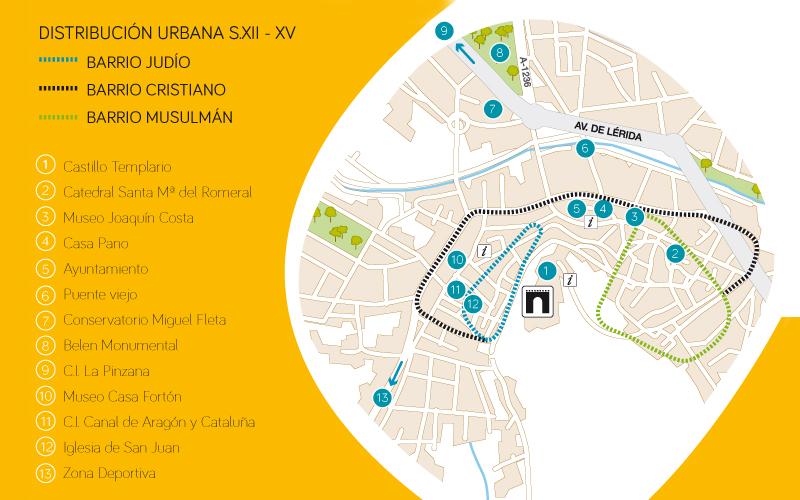 En este mismo casco antiguo, se puede disfrutar de la judería, o edificios tan destacados e interesantes como el propio ayuntamiento, Casa Pano, el Palacio de los Luzán o la Casa de Zazurca. También de la iglesia de San Juan Bautista, del S. XV. Es de estilo gótico tardío con reformas renacentistas y barrocas.
